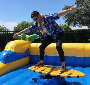 Azartas, adrenalinas ir juokas nuo pirmos sekundės. Išbandyk savo pusiausvyrą, reakciją ir ištvermę jodinėdamas and rodeo buliaus, siūbuodamas and banglentės ar riedlentės platformų. O gal išdrįsi mesti iššūkį dar nenugalėtam eliminatoriui?