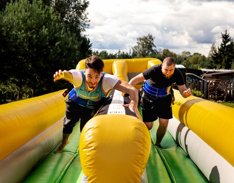 Nesijaudinkite, neskaudės. Minkšta trasos danga užtikrina saugų nusileidimą po kiekvieno partraukimo, tad žaidėjai gali atiduoti 100% savo pastangų. Ši atrakcija yra puikus būdas išsiaiškinti, kas yra greitesnis ir stipresnis.