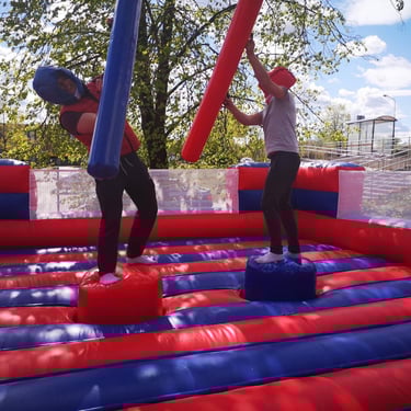 Ši atrakcija yra amžinas mėgstamas pasirinkimas komandos formavimo renginiams ir festivaliams, siūlantis tobulą fizinį ir tikros konkurencinės dvasios derinį. Masyvi, oro pripildyta arena užtikrina, kad kiekvienas „pralaimėjimas“ baigsis švelniu, saugiu ir linksmu nusileidimu. Gladiatorių dvikova suteiks begalę teigiamų emocijų tiek drąsiems dalyviams, tiek džiūgaujančiai miniai.
