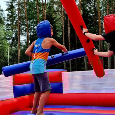 Atskleiskite savo vidinį karį mūsų galingoje pripučiamoje gladiatorių dvikovoje. Du varžovai susitinka ant pakeltų podiumų, apsiginklavę dideliais, minkštais gladiatorių lazdomis, turėdami vieną paprastą tikslą: nustumti priešininką nuo jo podiumo.