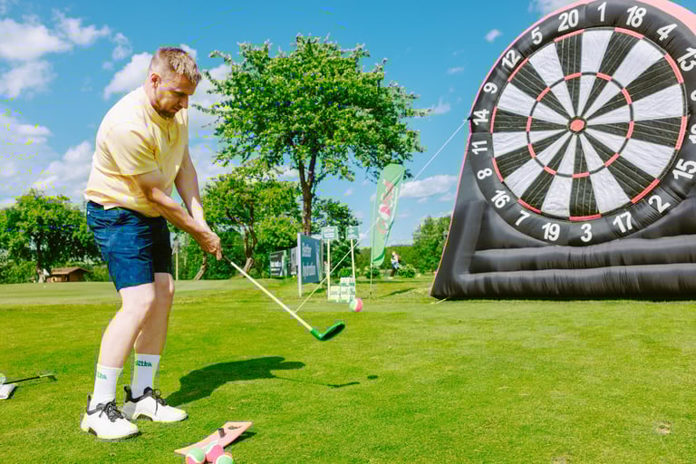 Daugelio pamėgtas golfsmiginio iššūkis suderina smiginyje reikalingą tikslumą ir teikiamą malonumą žaidžiant golfą. Tai puikus įgūdžių ir sėkmės derinys, puikiai tinkantis įmonių renginiams, miesto šventėms, golfo klubo vakarėliams ir privatiems renginiams.