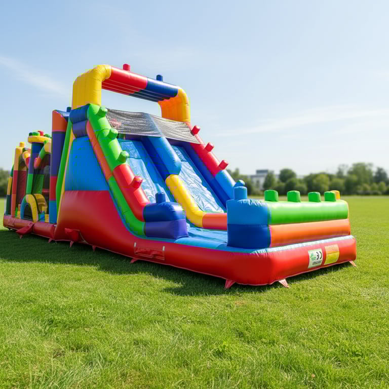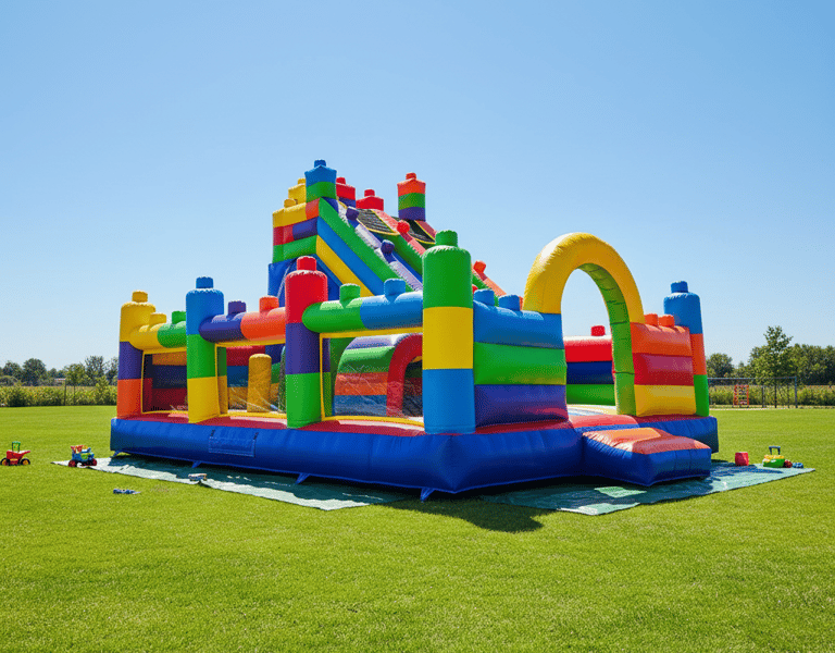 Šis batutas sukurtas aktyviam ir saugiam tyrinėjimui. Vaikai gali laisvai šokinėti minkštoje vidinėje erdvėje, įveikti kaladėles primenančius kliūčių elementus ir mėgautis greitu nusileidimu dviguba čiuožykla. Batuto konstrukcija leidžia vienu metu saugiai pramogauti būriui mažųjų pramogautojų.