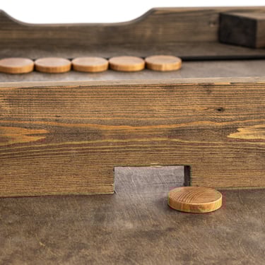 Žaidimo eiga: du žaidėjai stovi priešingose stalo pusėse. Naudodami specialią guminę laidynę, žaidėjai turi kuo greičiau perstumti visas savo pusėje esančias medines "šaškes" per siaurą plyšį į varžovo zoną.