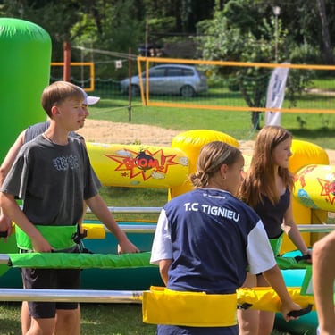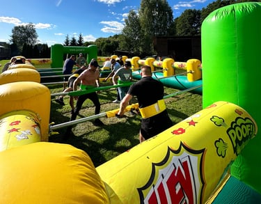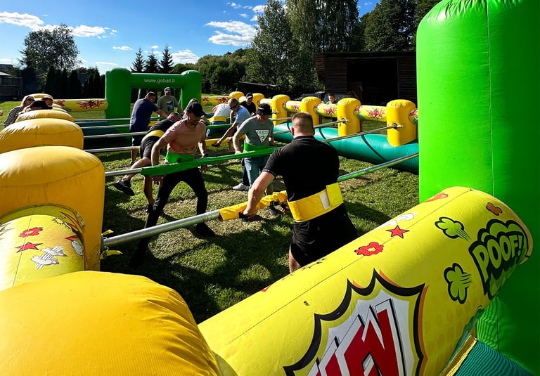 Paverskite savo renginį energinga stalo futbolo arena. Tai padidinta klasikinio stalo futbolo žaidimo versija, kurioje dalyviai yra pritvirtinti prie stumdomų strypų kaip tikri stalo futbolo žaidėjai.